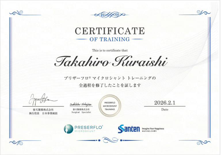 今後も専門性の高い低侵襲緑内障手術を安全に提供できるよう、チームで研鑽を続けてまいります。